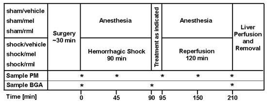 2. Mathes, A.M.; Kubulus, D.; Weiler, J.; Bentley, A.; Waibel, L.; Wolf, B.; Bauer, I.; Rensing, H. Melatonin receptors mediate improvements of liver function but not of hepatic perfusion and integrity after hemorrhagic shock in rat. Crit. Care Med. 2008, 36, 24–29. [Google Scholar] [CrossRef] [PubMed]