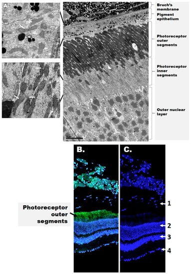 - Du, Y.; Veenstra, A.; Palczewski, K.; Kern, T.S. Photoreceptor cells are major contributors to diabetes-induced oxidative stress and local inflammation in the retina. Proc. Natl. Acad. Sci. USA 2013, 110, 16586–16591. [Google Scholar] [CrossRef] [PubMed]