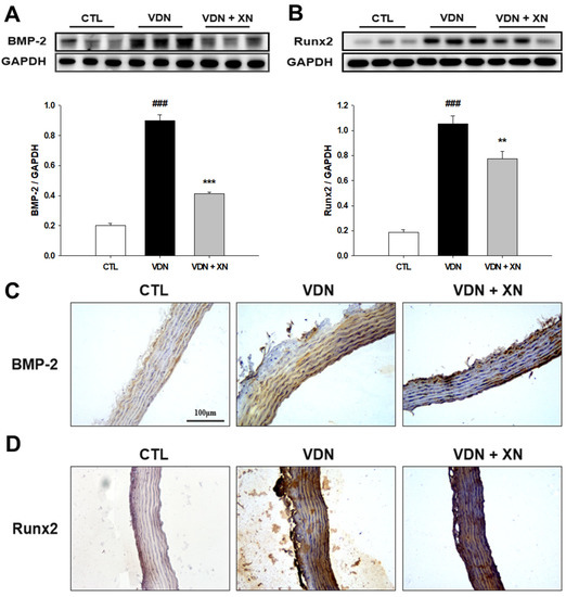 3.3. Effects of XN in Inhibition of BMP-2 and Runx2 in VDN-Induced VC