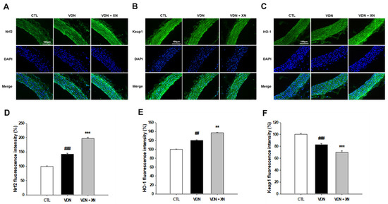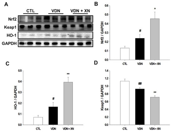 3.6. Effects of XN on the Expressions of Nrf2, HO-1, and Keap1