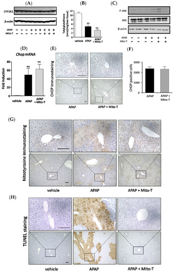 - Du, K.; Farhood, A.; Jaeschke, H. Mitochondria-targeted antioxidant Mito-Tempo protects against acetaminophen hepatotoxicity. Arch. Toxicol. 2017, 91, 761–773. [Google Scholar] [CrossRef] [PubMed]