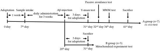 Experimental design of the in vivo test for amyloid beta (Aβ)-induced mice.