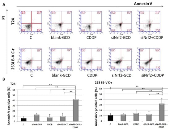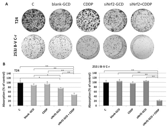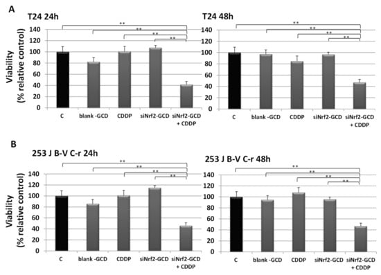 3.2. Biological Effects of siNrf2-GCD in Bladder Cancer CDDP-Resistant Cells