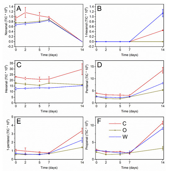 | Time (d) | Extract | Nonanal | 1-Hexanol | Hexanal | Pentanal | 1-Pentanol | Propanal | Hex/Pent |