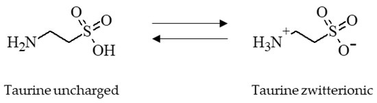 - Petrova, Y.S.; Neudachina, L.K. Potentiometric study of complexation between taurine and metal ions. Russ. J. Inorg. Chem. 2013, 58, 617–620. [Google Scholar] [CrossRef]