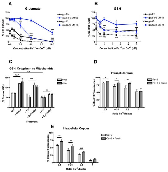 3.6. Iron More than Copper Dose-Dependently Reduces the Protection by Fisetin against Multiple Stresses
