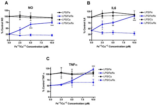 3.7. Effects of Iron and Copper on the Anti-inflammatory Effects of Fisetin