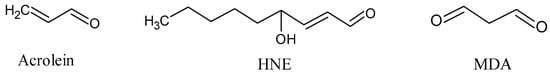 Short-chain aldehydes: acrolein, 4-hydroxy-2-hexenal (HNE), and malondialdehyde (MDA).