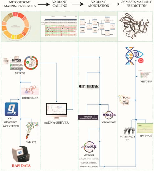 - Calabrese, C.; Simone, D.; Diroma, M.A.; Santorsola, M.; Gutta, C.; Gasparre, G.; Picardi, E.; Pesole, G.; Attimonelli, M. MToolBox: A highly automated pipeline for heteroplasmy annotation and prioritization analysis of human mitochondrial variants in high-throughput sequencing. Bioinformatics 2014, 30, 3115–3117. [Google Scholar] [CrossRef] [PubMed]