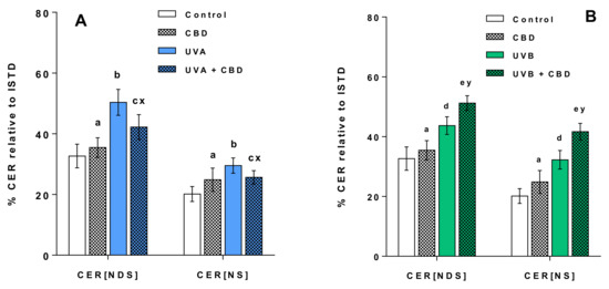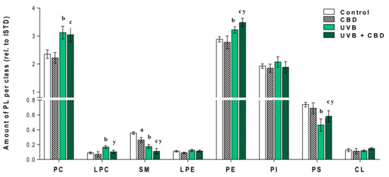 Łuczaj W, Domingues MdR, Domingues P, Skrzydlewska E. Changes in Lipid Profile of Keratinocytes from Rat Skin Exposed to Chronic UVA or UVB Radiation and Topical Application of Cannabidiol. Antioxidants. 2020; 9(12):1178. https://doi.org/10.3390/antiox9121178