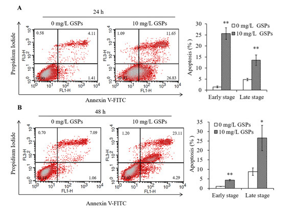 3.2. GSPs Induce the Apoptosis of HepG2 Cells