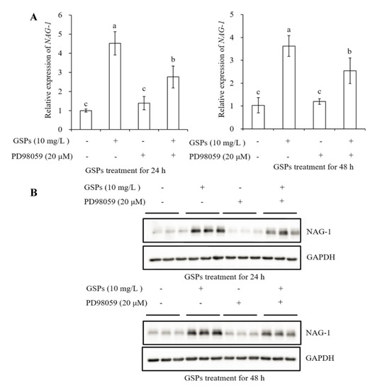 3.7. GSPs Induce Expression of NAG-1 of HepG2 Cells