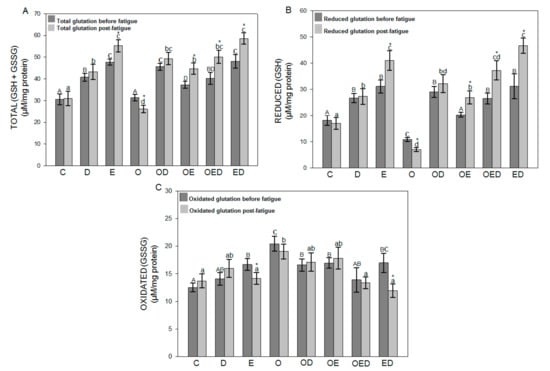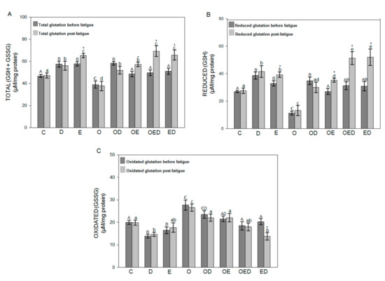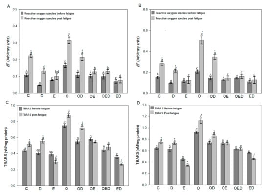 - Fernández, J.M.; Da Silva-Grigoletto, M.E.; Tunez-Fiñaca, I. Estrés oxidativo inducido por el ejercicio. Rev. Andal. Med. Deporte. 2009, 2, 19–34. [Google Scholar]