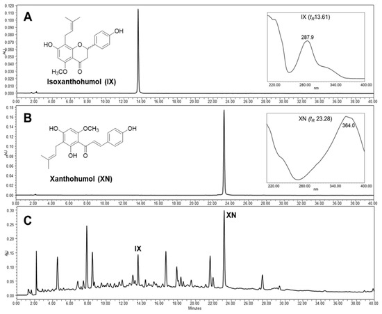 2.2. Preparation of Extract and Isolation of Hop Prenylflavonoids