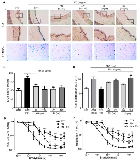 3.2. Xanthohumol and Isoxanthohumol in HOP Prevent FD-Induced Endothelial Premature Senescence