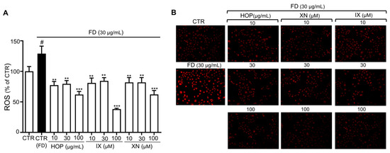3.3. HOP and Its Major Components XN and IX Decrease FD-Induced Oxidative Stress Levels