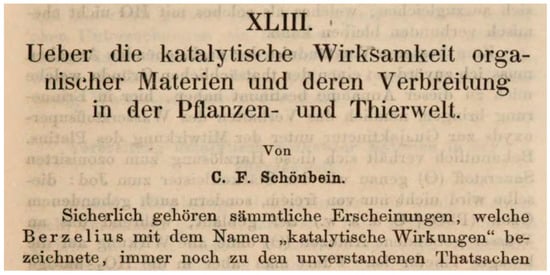Copy of the title page of Schönbein’s article on the discovery of peroxidases [2]. In the introduction of his article, he characterizes the decomposition of hydrogen peroxide by living materials as a catalytic process and refers to the father of catalysis Jöns Jacob Berzelius (1779–1848).