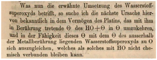 In the very same publication, Schönbein describes that these tissues, like platinum at high temperature, also liberate a gas upon H2O2 exposure that he characterized as “normal” oxygen. He also mentions that already Thénard had made similar observations with blood components. This means we could equally celebrate Schönbein or even Thenard as the discoverers of catalase (EC 1.11.1.6). Both catalytic activities, the catalatic and the peroxidatic one, proved to be heat-sensitive. Schönbein also mentions that a peroxidatic reaction had previously been seen in yeast by Julius Eugen Schlossberger (1819–1860).