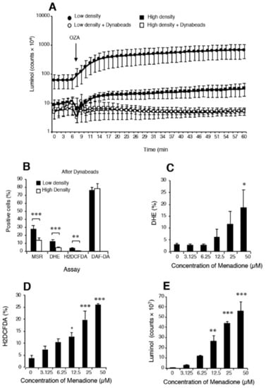 - Vilim, V.; Wilhelm, J. What do we measure by a luminol-dependent chemiluminescence of phagocytes? Free Radic. Biol. Med. 1989, 6, 623–629. [Google Scholar] [CrossRef]