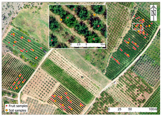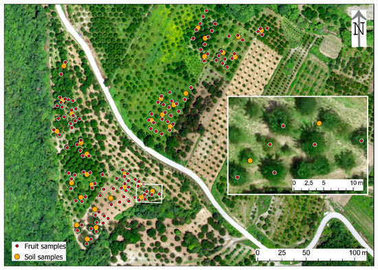 The fruit and soil samples in Sevastiana (a close view in the inset).