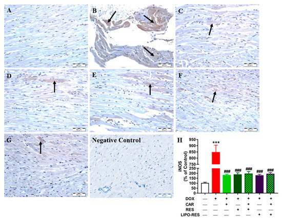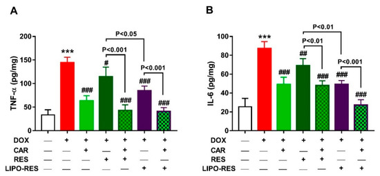 3.2. CAR, RES and LIPO-RES Attenuate Cardiac Inflammation in DOX-Intoxicated Rats