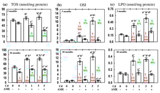 6]. The cadmium-induced insufficiency of the antioxidative mechanisms resulted in the decrease in TOS leading to the destruction of the oxidative/antioxidative balance and the development of oxidative stress with its negative consequences, such as enhanced lipid peroxidation. Because the mechanisms of the pro-oxidative action of cadmium at the cellular level are widely reported [