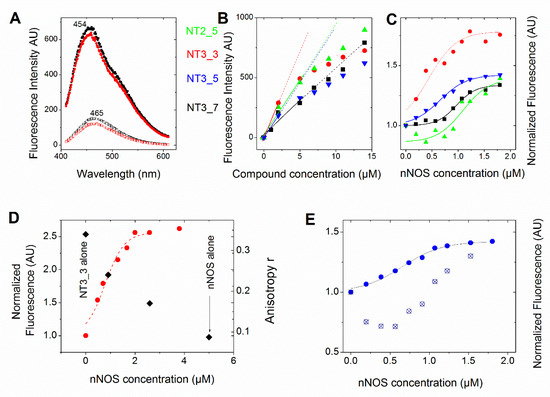 3.1.2. Evaluation of the Substitution of the 2’ Phosphate Group by (a) Carboxylate Group(s) on the Nanotrigger Affinity for e/nNOS Determined by Fluorescence Measurements