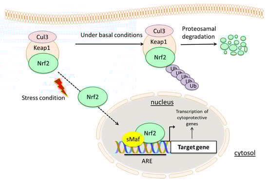 - McMahon, M.; Thomas, N.; Itoh, K.; Yamamoto, M.; Hayes, J.D. Dimerization of substrate adaptors can facilitate cullin-mediated ubiquitylation of proteins by a “tethering” mechanism: A two-site interaction model for the Nrf2-Keap1 complex. J. Biol. Chem. 2006, 281, 24756–24768. [Google Scholar] [CrossRef]