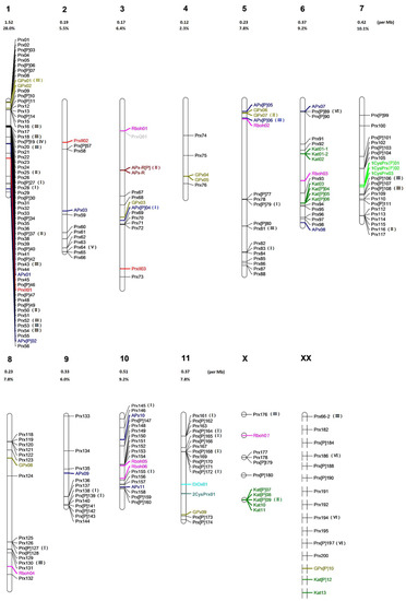 - Voorrips, R.E. MapChart: Software for the graphical presentation of linkage maps and QTLs. J. Hered. 2002, 93, 77–78. [Google Scholar] [CrossRef]