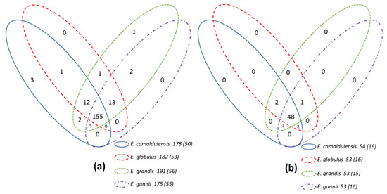 | Organisms | E. camaldulensis | E. globulus | E. grandis | E. gunnii | ||||