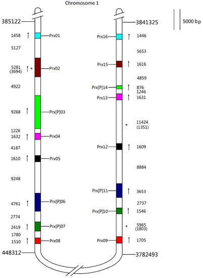 - Passardi, F.; Longet, D.; Penel, C.; Dunand, C. The class III peroxidase multigenic family in rice and its evolution in land plants. Phytochemistry 2004, 65, 1879–1893. [Google Scholar] [CrossRef] [PubMed]