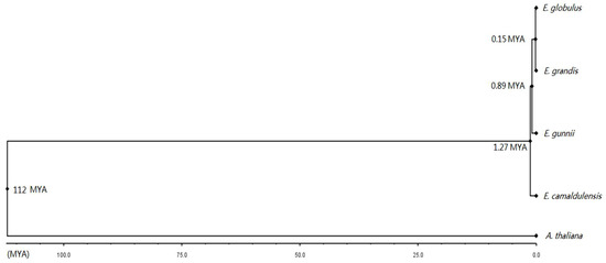3.9. Divergence Dates of the Four Eucalyptus Species