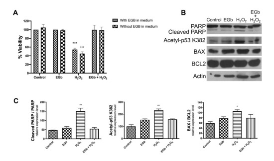 3.1. EGb Protects SK-N-BE Cells Against Oxidative Stress Induced Apoptotic Cell Death