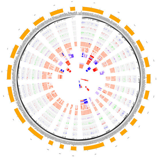 - Krzywinski, M.; Schein, J.; Birol, I.; Connors, J.; Gascoyne, R.; Horsman, D.; Jones, S.J.; Marra, M.A. Circos: An information aesthetic for comparative genomics. Genome Res 2009, 19, 1639–1645. [Google Scholar] [CrossRef]
