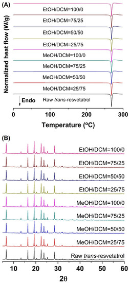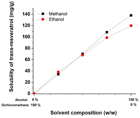 2.2. Solubility Study of Trans-Resveratrol in the Alcohol and Dichloromethane Mixtures