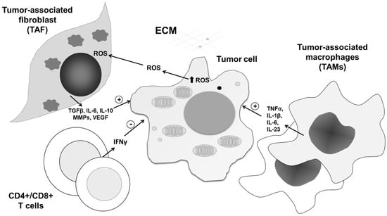 - Weinberg, F.; Ramnath, N.; Nagrath, D. Reactive oxygen species in the tumor microenvironment: An overview. Cancers (Basel) 2019, 11, 1191. [Google Scholar] [CrossRef]