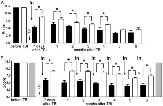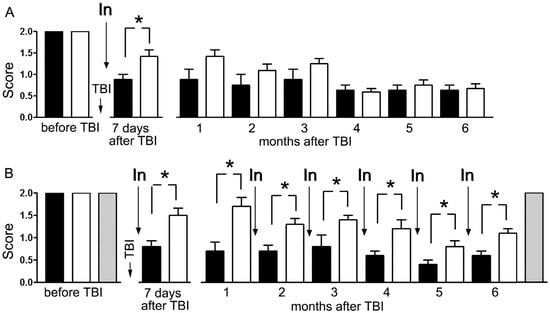 - Acosta, S.A.; Tajiri, N.; Shinozuka, K.; Ishikawa, H.; Grimmig, B.; Diamond, D.M.; Sanberg, P.R.; Bickford, P.C.; Kaneko, Y.; Borlongan, C.V. Long-term upregulation of inflammation and suppression of cell proliferation in the brain of adult rats exposed to traumatic brain injury using the controlled cortical impact model. PLoS ONE 2013, 8, e53376. [Google Scholar] [CrossRef]