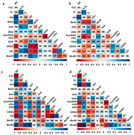 - Ferguson, D.L.; Burke, J.J. Methionyl sulfoxide content and protein-methionine-S-oxide reductase activity in response to water deficits or high temperature. Physiol. Plant. 1994, 90, 253–258. [Google Scholar] [CrossRef]