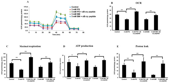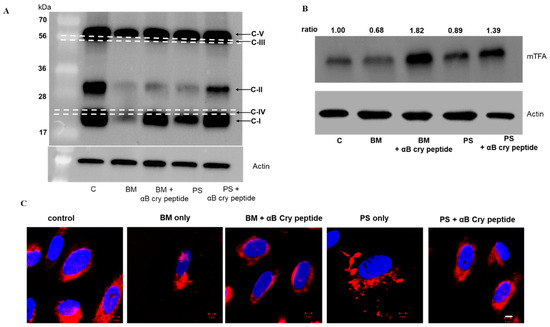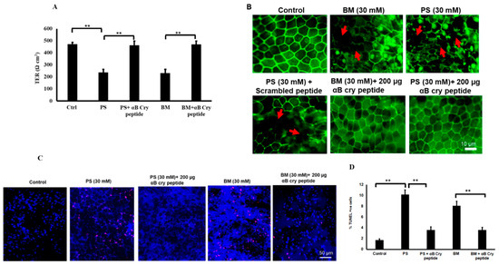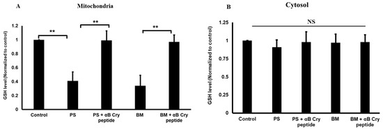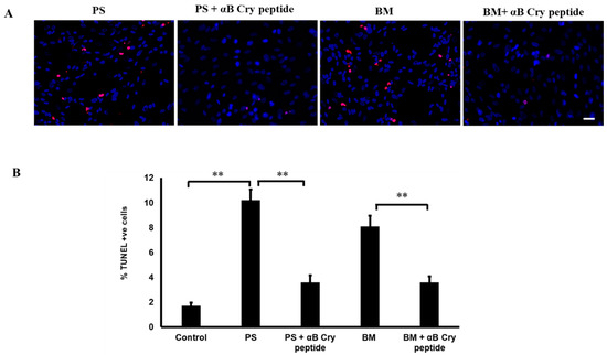 2.2. Protection of RPE by Exogenous αB Cry Peptide from PS- or BM-Induced Cell Death