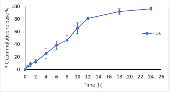 In vitro release profile of PIC-E in phosphate-buffered saline (pH 7.4, 0.1 M) containing Tween 80 (0.1%) at 37 ± 0.5 °C.
