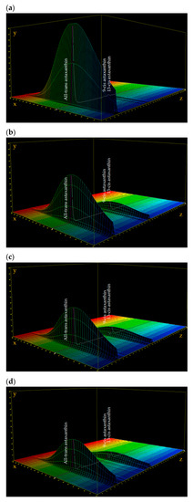 The isomerization process is even more evident observing the three-dimensional (3D) plots of the chromatograms and spectra of the initial astaxanthin concentration (C0), and astaxanthin at 60, 70, and 80 °C after 16 h. In Figure 8a, the 3D plot of the initial concentration (C0) is shown, in which the initial peak of the all-trans isomer and the subsequent peaks of the 9-cis and 13-cis isomers are visible along the z-axis. Along the x-axis, the absorption spectrum of each isomer is shown, with a maximum absorbance of 478 nm. As can be seen in Figure 8b–d, the peak height of the all-trans isomer decreased significantly in samples incubated at 60, 70, and 80 °C after 16 h of storage, with an increase in the peak height of the 9-cis and 13-cis isomers.