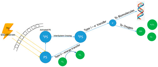 PDT is a negligibly intrusive treatment that merges the use of a non-toxic PS and visible light to provoke a specific cytotoxic action activity towards neoplastic cells [52,53,54].
