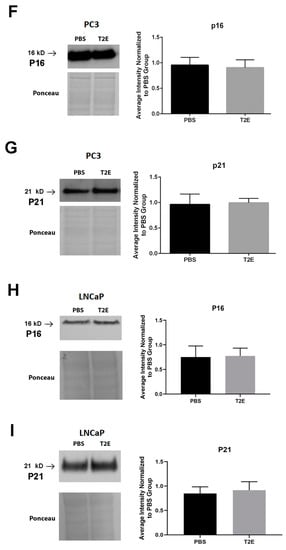 Phosphorylation levels and expression levels of PPP-regulated proteins. (A) Representative images of cyclin D1 and phospho-cyclin D1 (Thr 286) Western blots and ponceau staining in PC3 cells with densitometry of phosphorylation levels of cyclin D1. (B) Representative images of pRB and phospho-pRB (Ser-780) western blots and ponceau staining in PC3 cells with densitometry of phosphorylation levels of pRB. (C) Representative images of cyclin D1 and phospho-cyclin D1 (Thr 286) western blots and ponceau staining in LNCaP cells with densitometry of phosphorylation levels of cyclin D1. (D) Representative images of pRB and phospho-pRB (Ser-780) western blots and ponceau staining in LNCaP cells with densitometry of phosphorylation levels of pRB. (E) Representative images of pRB western blots and ponceau staining in both PC3 and LNCaP cells with densitometry of phosphorylation levels of pRB. (F,G) Representative images of western blots for p16 and p21 in PC3 cells, respectively, with densitometry analysis of p16 and p21. (H,I) Representative images of western blots for p16 and p21 in LNCaP cells, respectively, with densitometry analysis of p16 and p21. All data represent mean ± SD from at least three independent experiments.