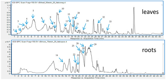 3.1. The Extracts Profiling by HPLC-ESI-Q-TOF-MS