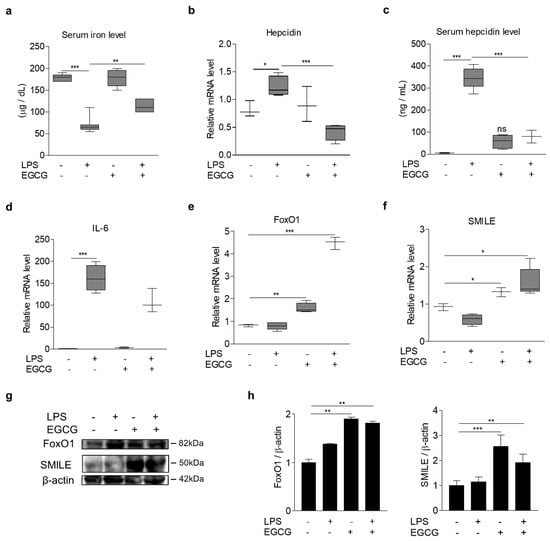 3.6. EGCG Inhibits LPS-Induced Hepcidin Expression and Hypoferremia in Mice