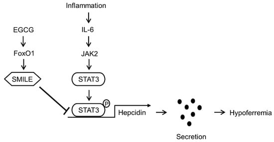 epigallocatechin-3-gallate; SMILE; IL-6; STAT3; FoxO1; hepcidin; iron metabolism; anemia of chronic disease 1. Introduction