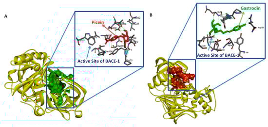 | 2 | BACE1 | Picein | −5.94 Kcal/Mol | 44.03 µM | Ser35, Leu30, Asp32, Gly34, Pro70, Thr72, Phe108, Trp115, Tyr71, Ile118, Tyr198, Thr231, Ile226, Asp228, Gly230, Val332 | BACE1:THR72:N-Picein:O12 | 3.03172 |