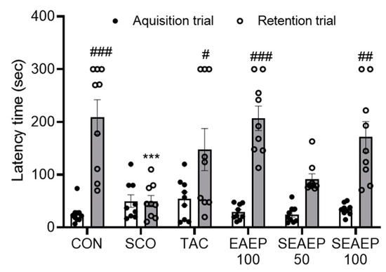 3.3. Effect of EAEP on Memory Ability in the Passive Avoidance Test