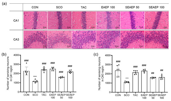 3.6. Effect of EAEP on Hippocampal Neurons in the CA1 and CA3 Regions