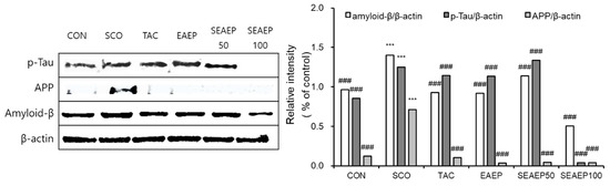 3.7. Effect of EAEP on β-Amyloid and Tau Expression
